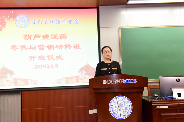 8月31日,豪门国际医药零售与营销研修班开班仪式在厦门大学经济学院举行,为期8天的“厦大豪门国际班”正式拉开帷幕。厦门大学经济学院继续教育中心主任廖景峰先生与豪门国际药业集团董事长刘景萍女士分别在开班仪式上致辞,中国医药物资协会研究院执行院长代航先生担任本次研修班班主任并主持开班仪式。